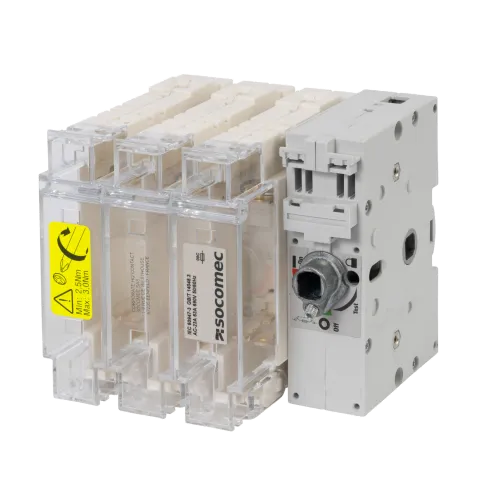 Descripción | Interruptor-seccionador con fusibles NH00C FUSERBLOC de 3x63A para accionamiento frontolateral |