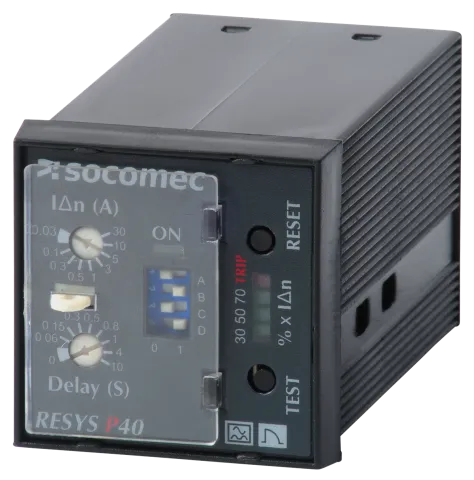 Descripción | Relé diferencial RESYS P40 Us=230VAC de 0,03 a 30A con retraso de 0 hasta 10s |
